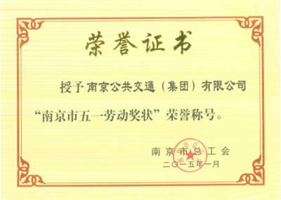 南京市五一勞動(dòng)獎(jiǎng)狀